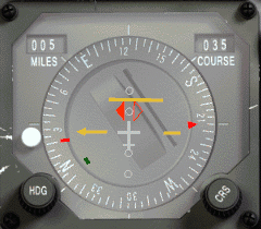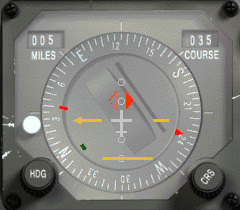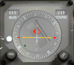 V pozici bodu 1, CDI má odchylku na levé straně (to znamená, že nastavený radiál je na tvé pravé straně) a začne se pohybovat směrem k středu ciferníku, jakmile se blížíme imaginární lince.