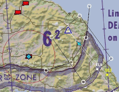 Poslední funkcí DTC je možnost vykreslení geografických linek na UI mapě, které se pak objeví na HSD. Můžou být maximálně čtyři (LINE1, LINE2, LINE3 a LINE4) a používají steerpointy 31-50. Každá série linek "LINE" využívá až 5 steerpointů, pomocí kterých se vykreslí hranice bojové oblasti (FEBA)/(FLOT), geografické hranice nebo další bojové prvky (CAP AOR, oblast útoku, umístění spojenců atd.). Linie na HSD jsou vytvořeny steerpointy, které jsou spojeny přerušovanou čárou. Pokud některá z linek je částečně mimo HSD, tak jen viditelné část linky je zobrazená. V kampani se už automaticky nevykresluje FLOT (ta zubatá neužitečná čára). Pilot ji musí nakreslit pomocí LINES, pokud ji chce.