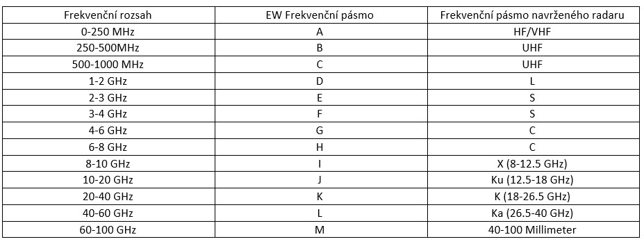 Upozorňujeme, že všechna pásma implementovaných radarových vysílačů v BMS jsou vysvětlena v "BMS Threat Guide".
